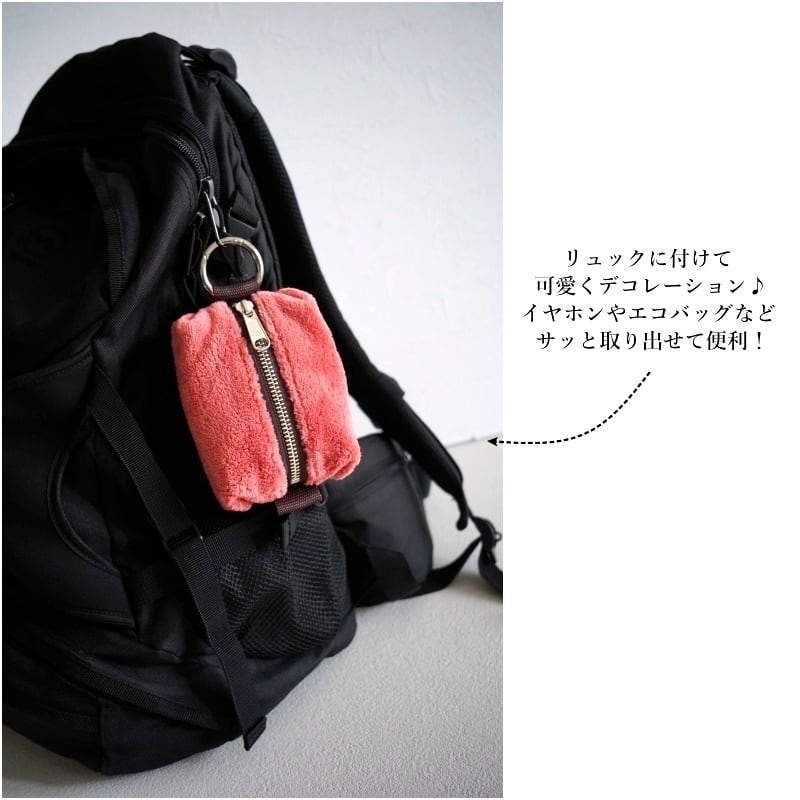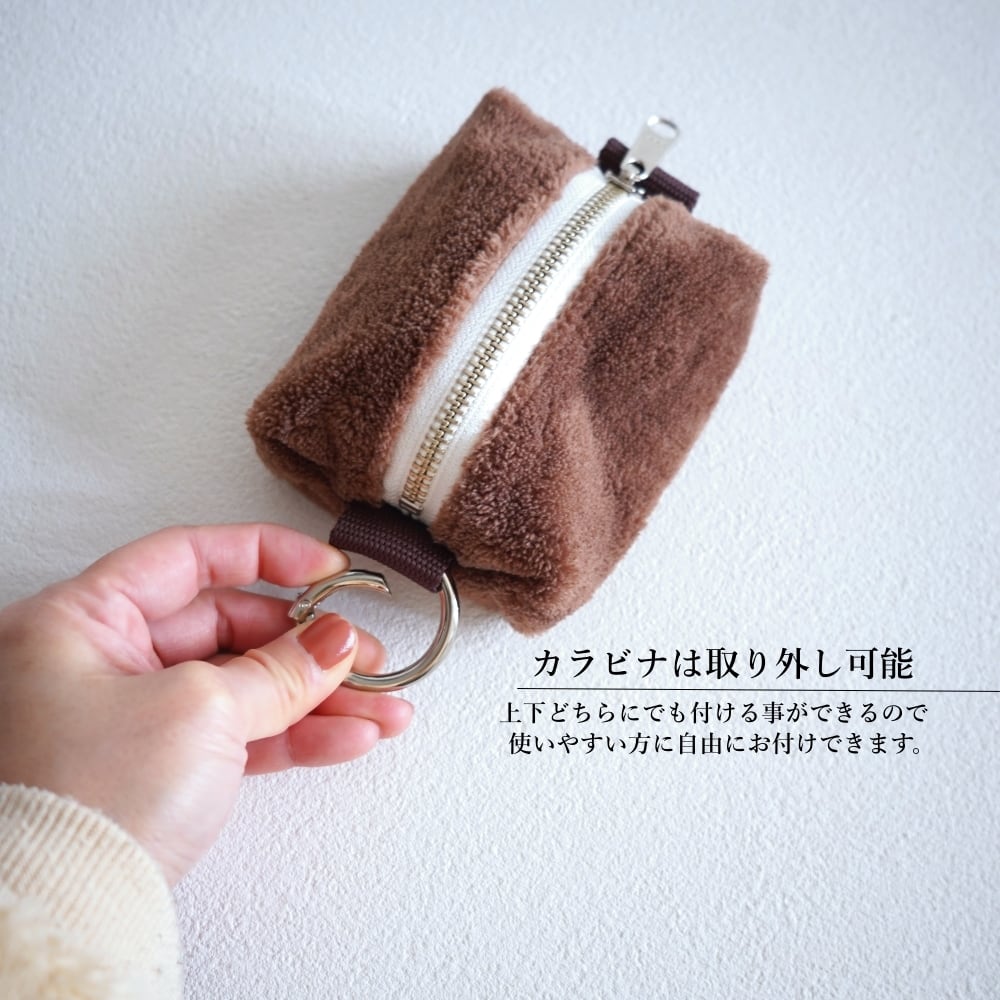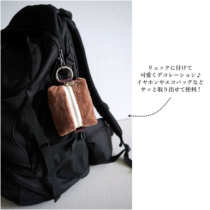 手のひらサイズで、気分まであったか。ぬいぐるみみたいに触れたくなる、ふわふわもこもこカラビナポーチ。
