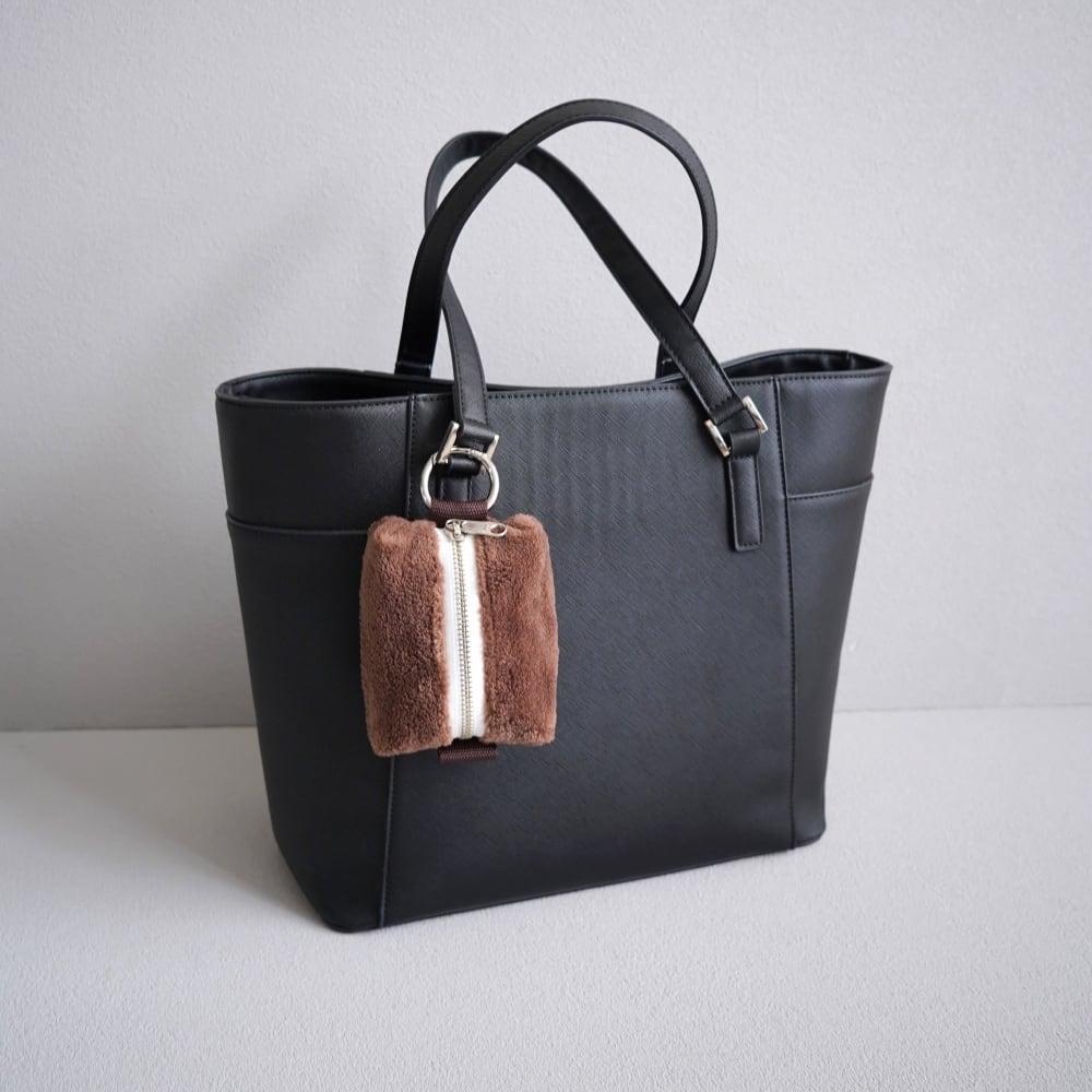 ふわふわ・もこもこ。思わず触りたくなる、あったかボア素材を使用。手に取った瞬間のやさしい感触は、まるで小さな毛布。秋冬コーデのアクセントにもなって、バッグの中が一気に可愛くなります。