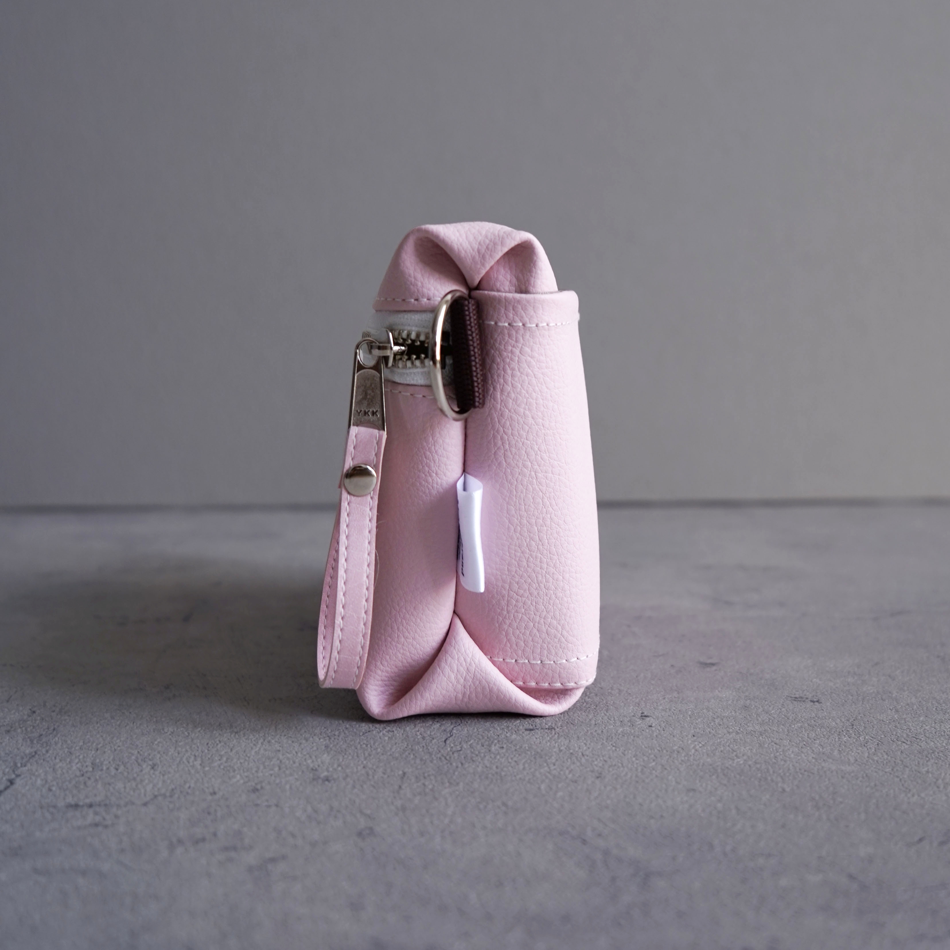 ■ 使いやすさを追求したディテール設計。ファスナーの持ち手には本体と同じカラーの合皮ストラップをつけて開け閉めもスムーズ。背面にはスマートフォンやICカードなどを収納できる外ポケット有り。