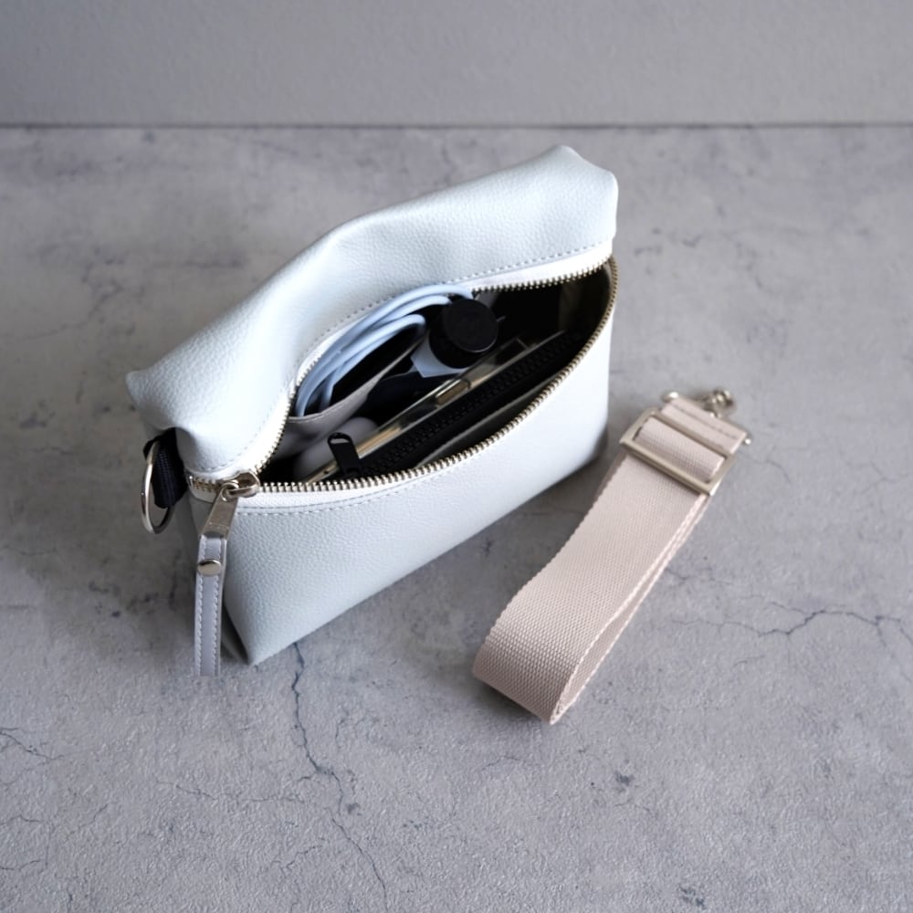 淡くスモーキーなニュアンスカラーを纏った、大人のためのミニショルダー。ナチュラルにもきれいめにもなじみ、日常にそっと溶け込みます。