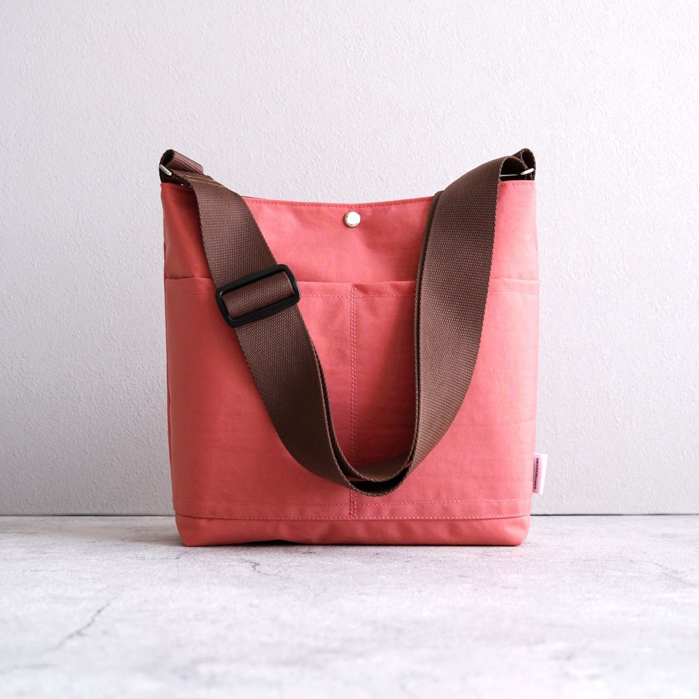 やわらかな春風に映える、コーラルピンク。春らしいコーラルピンクがコーディネートのやさしい差し色になり、デイリーにも休日にも使いやすいデザインに仕上げました。スクエア型のすっきりとしたフォルムで、甘くなりすぎず大人の雰囲気を保ちます。