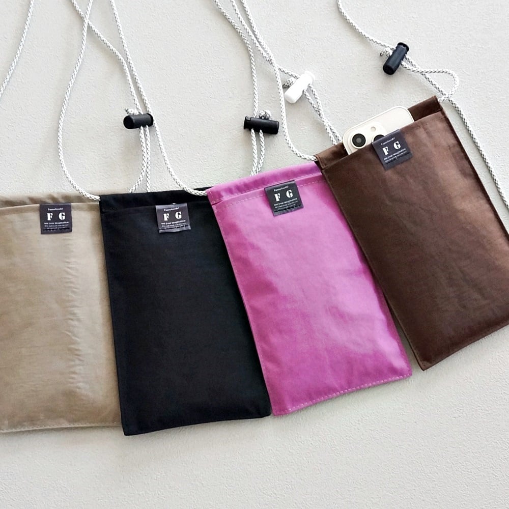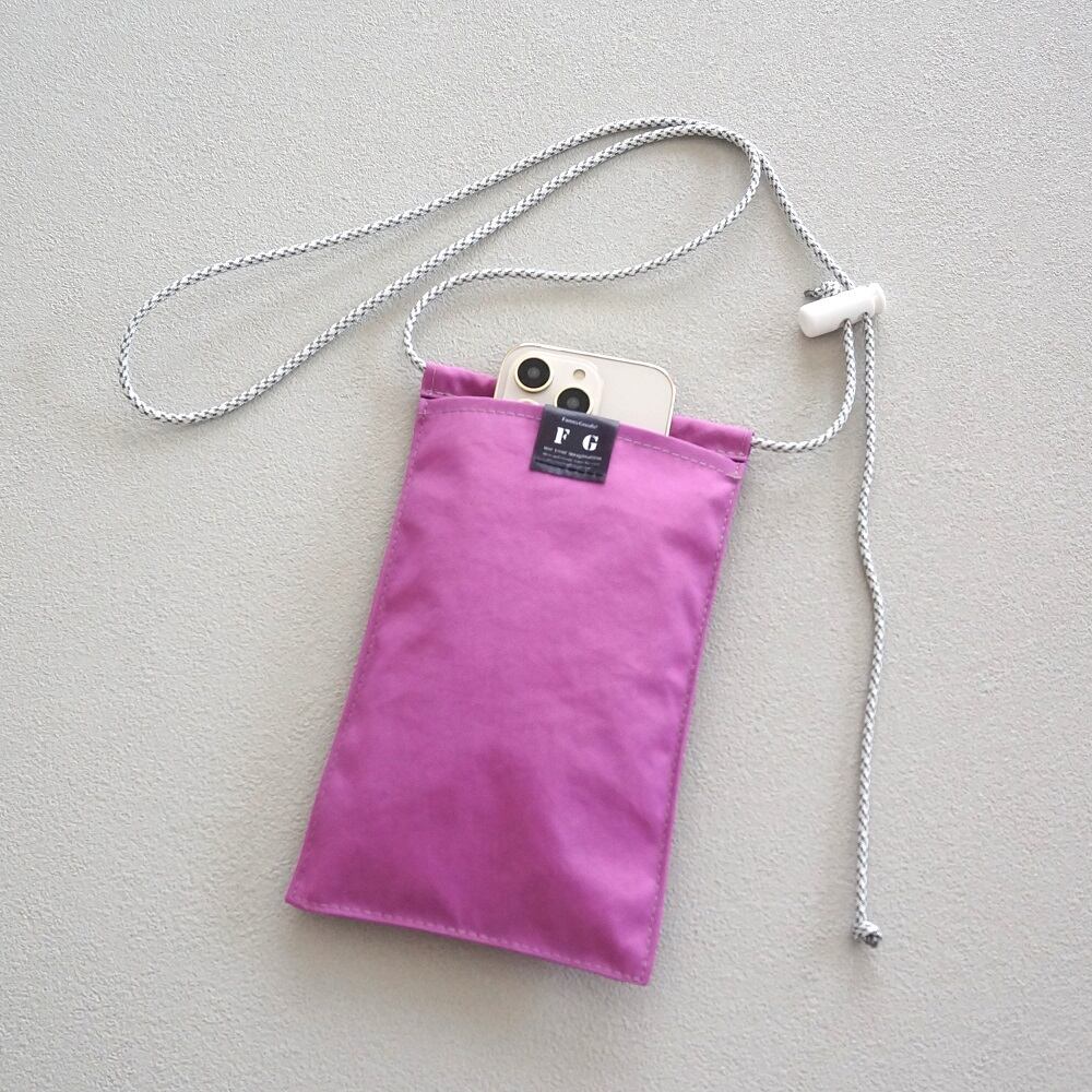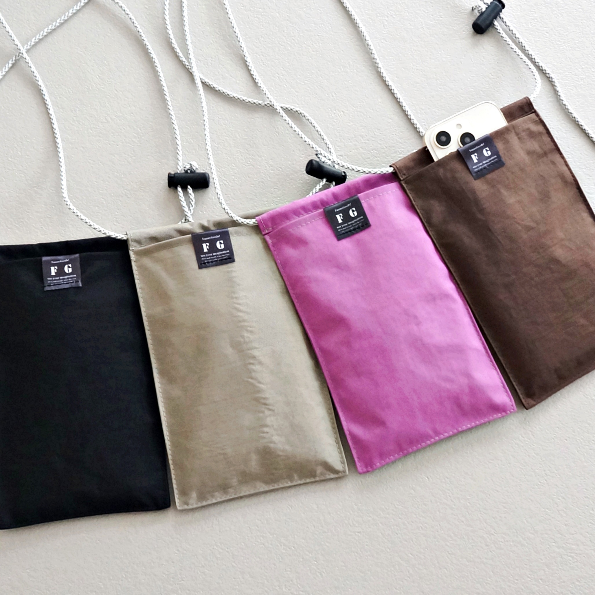 ・マチが無い事でコストカットを実現。通常のスマートフォンバッグよりサイズを大きくすることで、マチが無くても荷物が入りやすく、スマートフォンが落ちにくい設計。